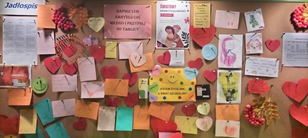 Dziś w całym przedszkolu obchodziliśmy Dzień Życzliwości i Pozdrowień– wyjątkowe święto dobrych słów, uśmiechów i ciepłych gestów. W holu przedszkolnym pojawiła się specjalna tablica, na której dzieci, rodzice i nauczyciele mogli zostawić swoje miłe słowa oraz pozdrowienia dla innych. Tablica szybko wypełniła się kolorowymi wpisami pełnymi dobroci.