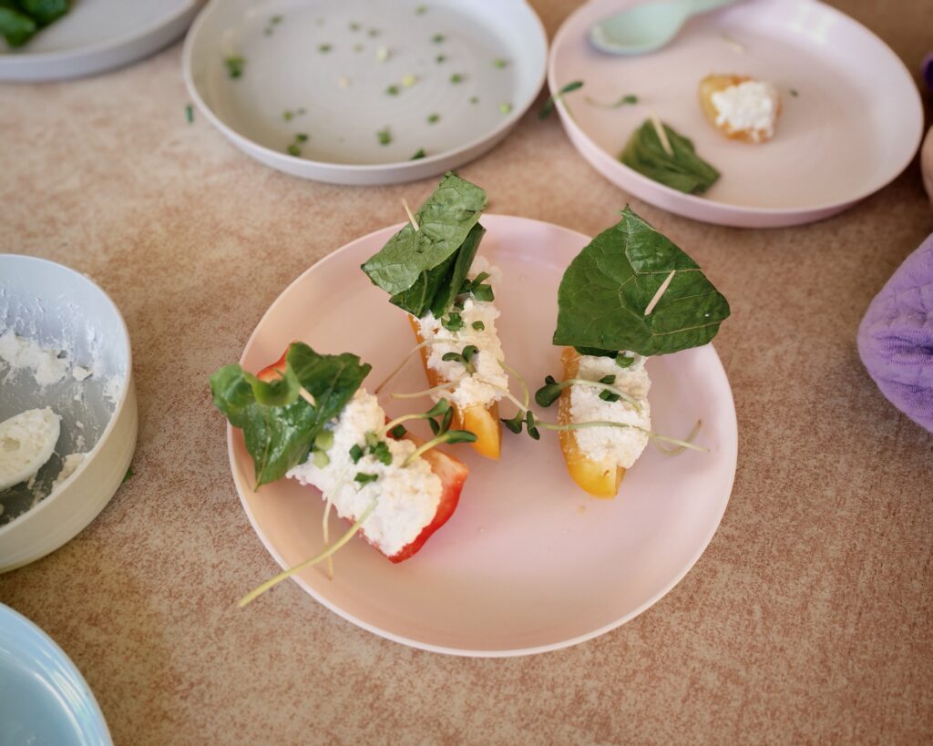 Dziś Jeżyki zamieniły się w prawdziwych kucharzy i przygotowywały kolorowe łódeczki z papryki i białego sera. Było ugniatanie, mieszanie, doprawianie i dużo radości.