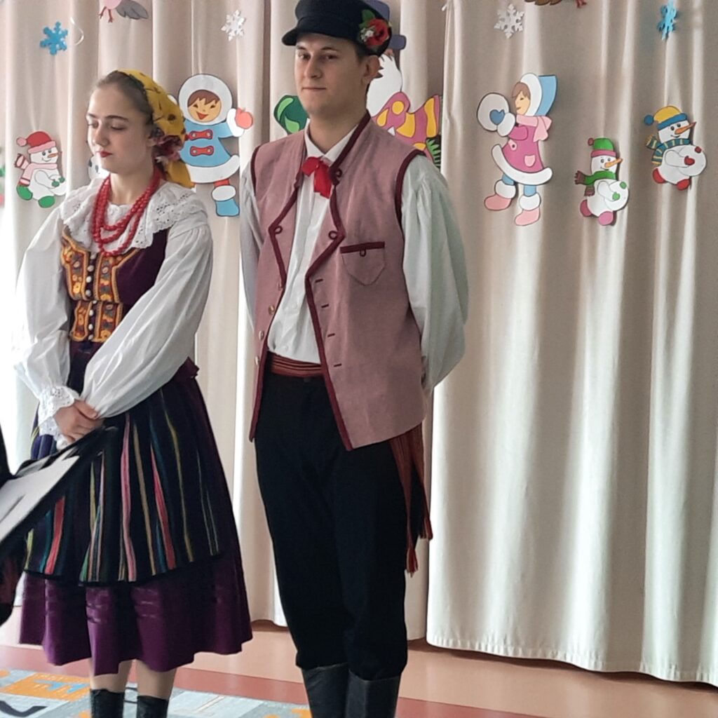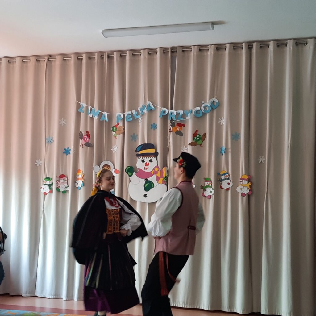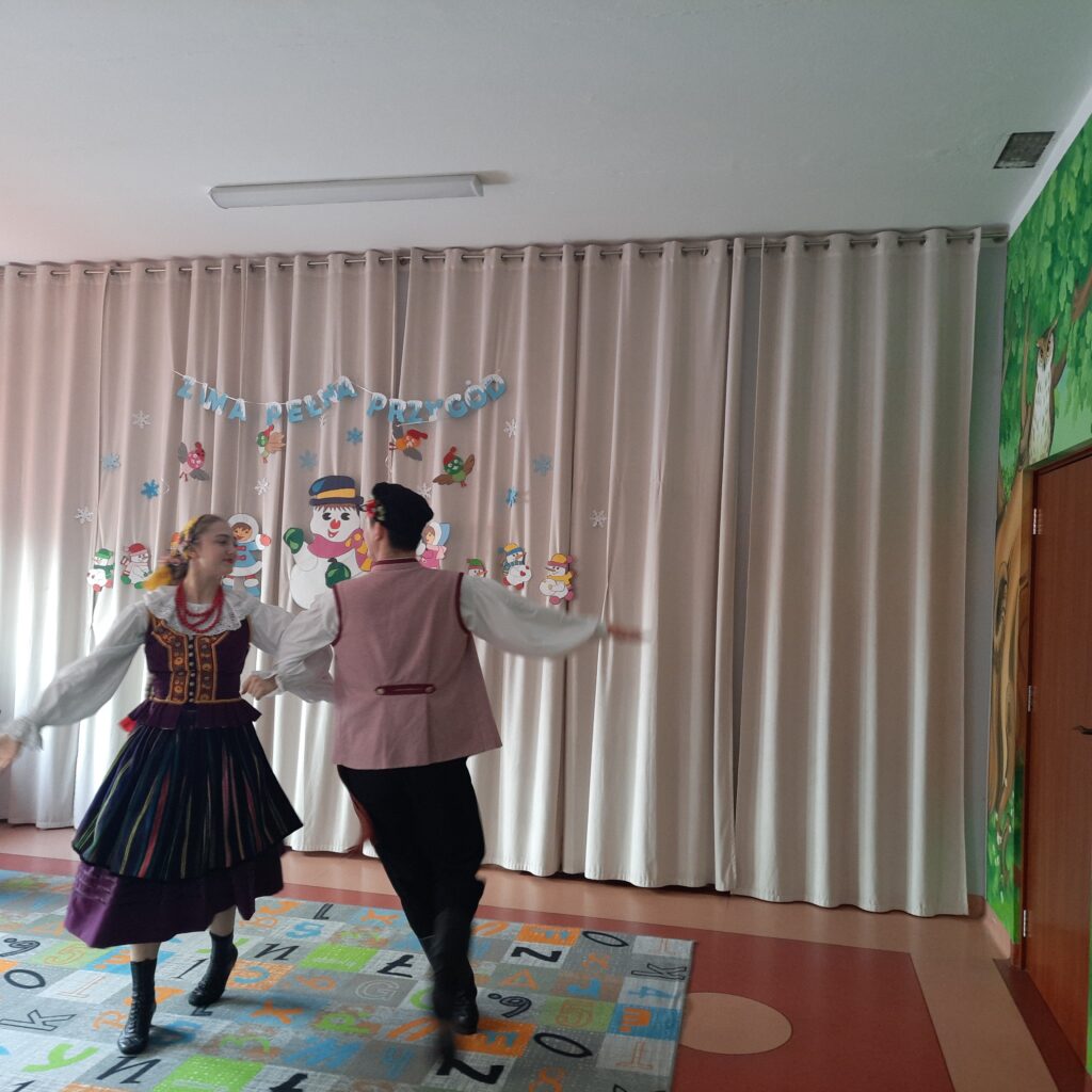 W naszym przedszkolu odbył się wyjątkowy koncert muzyczny, który wprowadził dzieci w radosny i barwny świat tradycji ludowych kolejnego regionu Polski. Podczas spotkania dzieci miały okazję poznać zwyczaje związane z zapustami – dawnym okresem karnawału, pełnym muzyki, tańca i wspólnej zabawy. Artyści zaprezentowali tradycyjne stroje ludowe, opowiedzieli o dawnych obrzędach oraz zatańczyli do skocznych melodii. Koncert był nie tylko wspaniałą zabawą, ale także cenną lekcją kultury i tradycji ludowej. Dziękujemy artystom za pełne energii spotkanie oraz niezapomniane muzyczne wrażenia!
