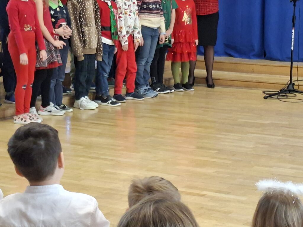 Dziś nasze przedszkolaki miały okazję uczestniczyć w wyjątkowym przedstawieniu teatralnym „Kolędowanie 2025”, przygotowanym przez uczniów Szkoły Podstawowej nr 310. Dzieci z dużym zainteresowaniem śledziły występy, wsłuchiwały się w kolędy i z radością odkrywały piękno świątecznych tradycji. To spotkanie było dla nich cennym doświadczeniem kulturalnym i miłym wprowadzeniem w przedświąteczny nastrój.