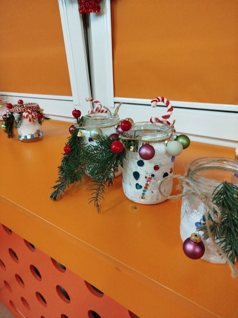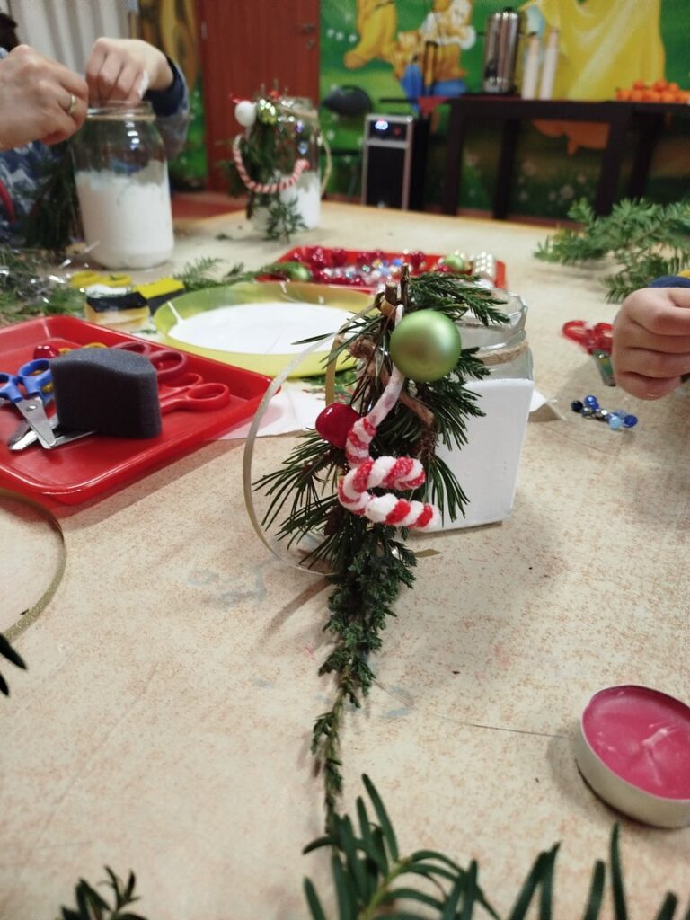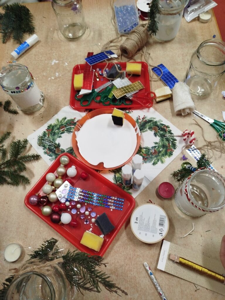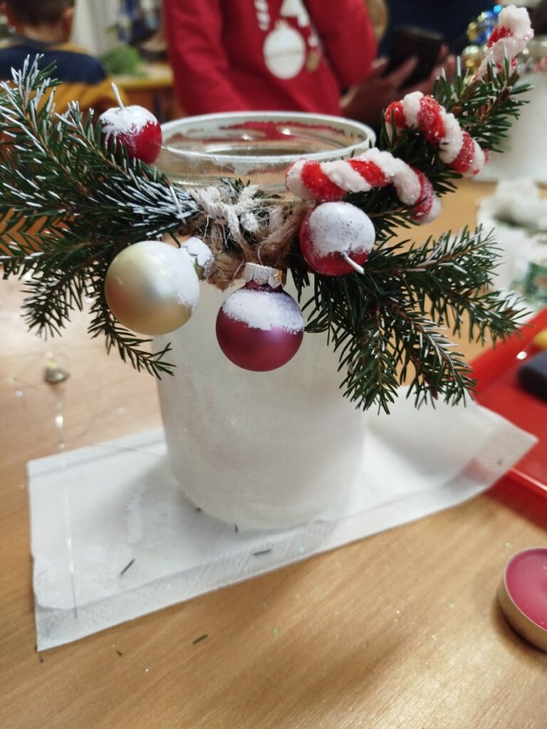 Spotkanie zaczęliśmy od wykonania świątecznych dekoracji. Rodzice i dzieci wyczarowali prześliczne i pachnące choinką lampiony. Podczas pracy towarzyszyła nam radosna i świąteczna atmosfera.