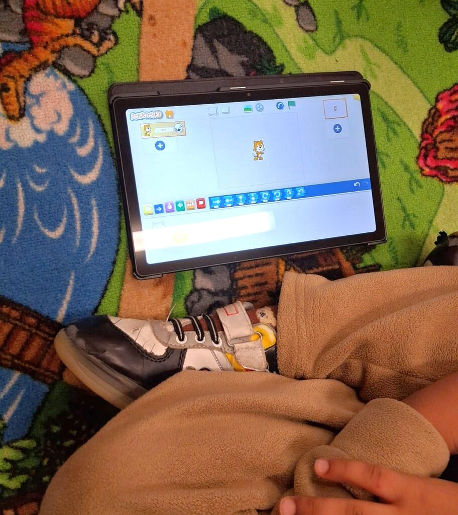Dziś w naszym przedszkolu odbyły się warsztaty matematyczne pod hasłem „Tablety – aplikacje do zadań specjalnych”. Dzieci z dużym zainteresowaniem uczestniczyły w zajęciach, podczas których bawiły się w aplikacji Scratch Junior, programując ruchy kotka i rozwijając logiczne myślenie oraz kreatywność.